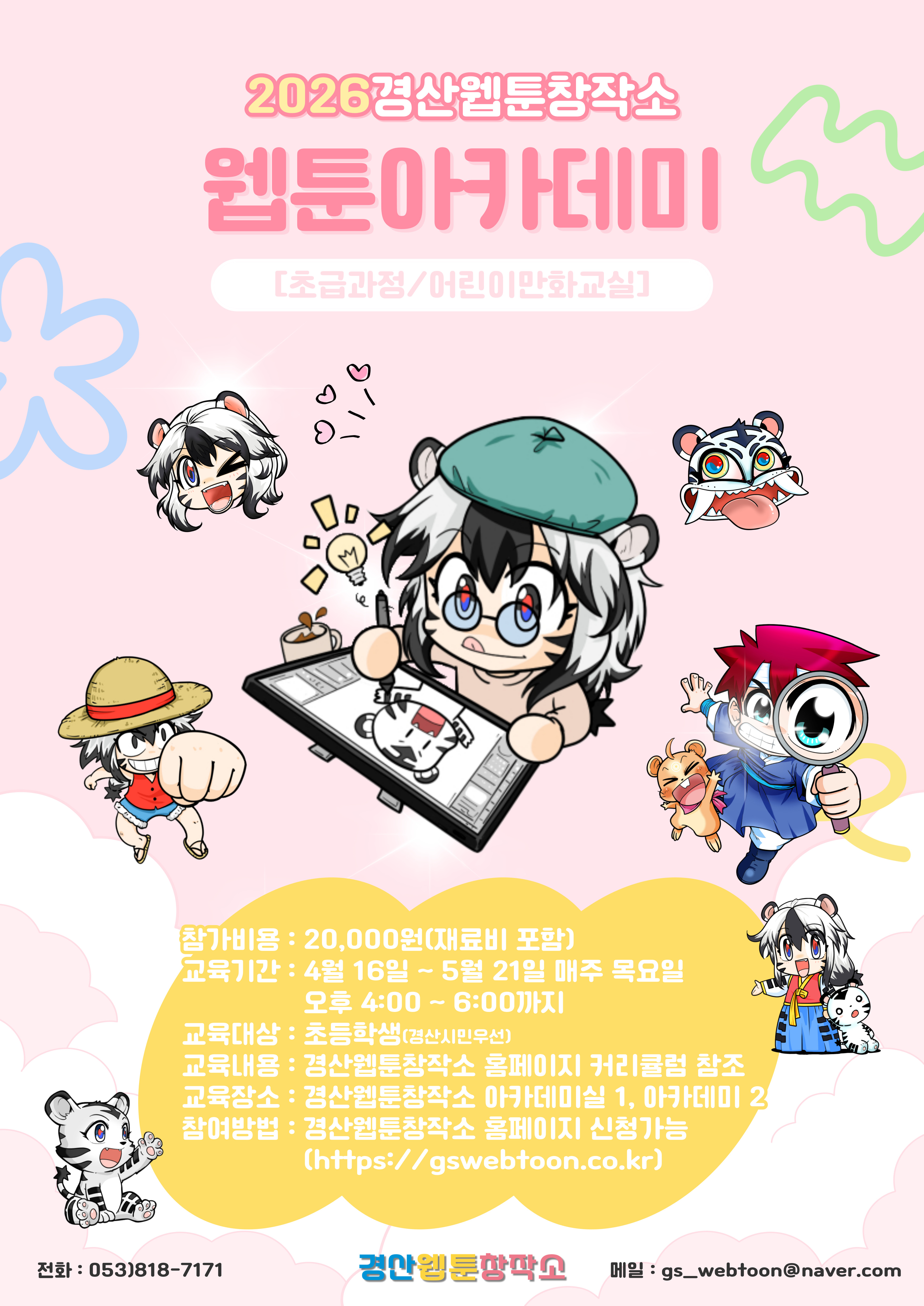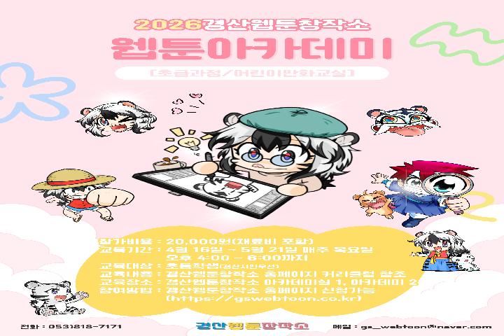 - 강사 : 메인강사(만화경력 10년 이상), 보조강사(만화경력 1년 이상) 각 1명씩 배정